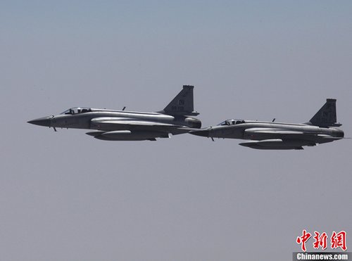資料圖:李克強訪問巴基斯坦期間,梟龍戰機為中方專機護航。