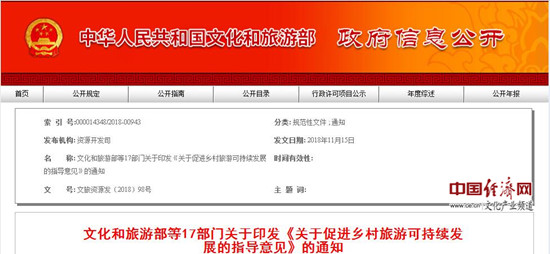 經(jīng)濟(jì)日報-中國經(jīng)濟(jì)網(wǎng)北京12月11日訊 為深入貫徹落實《中共中央 國務(wù)院關(guān)于實施鄉(xiāng)村振興戰(zhàn)略的意見》(中發(fā)〔2018〕1號)和《鄉(xiāng)村振興戰(zhàn)略規(guī)劃(2018-2022年)》,推動鄉(xiāng)村旅游提質(zhì)增效,促進(jìn)鄉(xiāng)村旅游可持續(xù)發(fā)展,加快形成農(nóng)業(yè)農(nóng)村發(fā)展新動能,近日文化和旅游部等17部門聯(lián)合印發(fā)《關(guān)于促進(jìn)鄉(xiāng)村旅游可持續(xù)發(fā)展的指導(dǎo)意見》(以下簡稱《意見》),《意見》提出,到2022年,旅游基礎(chǔ)設(shè)施和公共服務(wù)設(shè)施進(jìn)一步完善,鄉(xiāng)村旅游服務(wù)質(zhì)量和水平全面提升,富農(nóng)惠農(nóng)作用更加凸顯,基本形成布局合理、類型多樣、功能完善、特色突出的鄉(xiāng)村旅游發(fā)展格局。