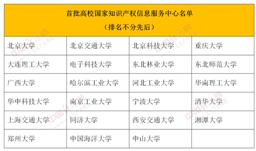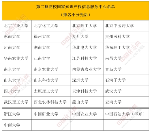 據中國經濟網文化產業頻道記者了解,2019年3月7日,經國家知識產權局辦公室聯合國家教育部辦公廳公布,北京大學等23家高校已入選“首批高校國家知識產權信息服務中心”名單。隨著第二批37家高校的入選,“高校國家知識產權信息服務中心”總體數量增至60家。