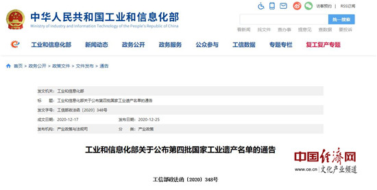 經(jīng)濟(jì)日報-中國經(jīng)濟(jì)網(wǎng)北京12月25日訊 記者從工業(yè)和信息化部獲悉,為加強(qiáng)文化遺產(chǎn)保護(hù)傳承,推動工業(yè)遺產(chǎn)保護(hù)利用,工業(yè)和信息化部日前正式確定了第四批國家工業(yè)遺產(chǎn)名單,62家單位入選其中。