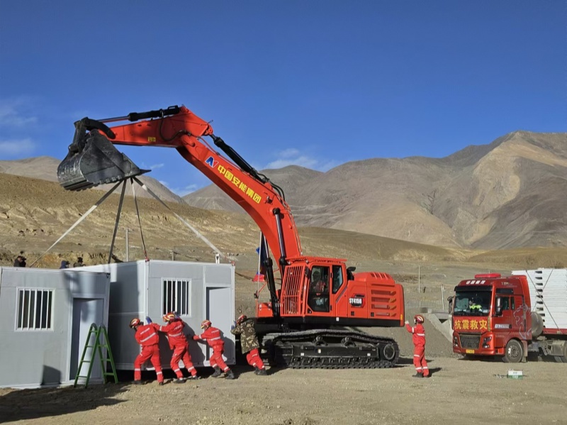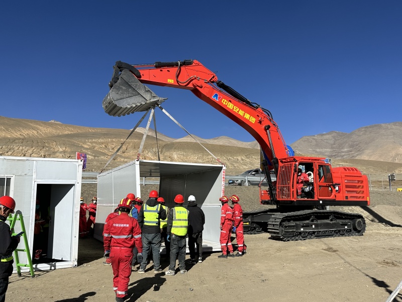 1月9日,在前方指揮部的統一調度下,繼完成受損房屋搜尋、用電需求保障、安置帳篷搭設、協助轉運重傷員等任務后,為了保障受災群眾溫暖過冬,中國安能在嘎旦村、玉白村方向組織開展場地平整作業,并進行活動板房的搭設。在嘎旦村投入60余人、10余臺重型救援裝備全力投入板房搭設工作。過程中,挖掘機、吊機等重型裝備與救援人員共同協作,搭建工作進展迅速。