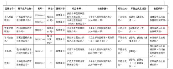 通告顯示,經(jīng)湖南省藥品檢驗(yàn)檢測(cè)研究院檢驗(yàn),標(biāo)示為四川逢春制藥有限公司生產(chǎn)的1批次玄麥甘桔顆粒(批次:210910)不符合規(guī)定,不符合規(guī)定項(xiàng)目為含量測(cè)定。